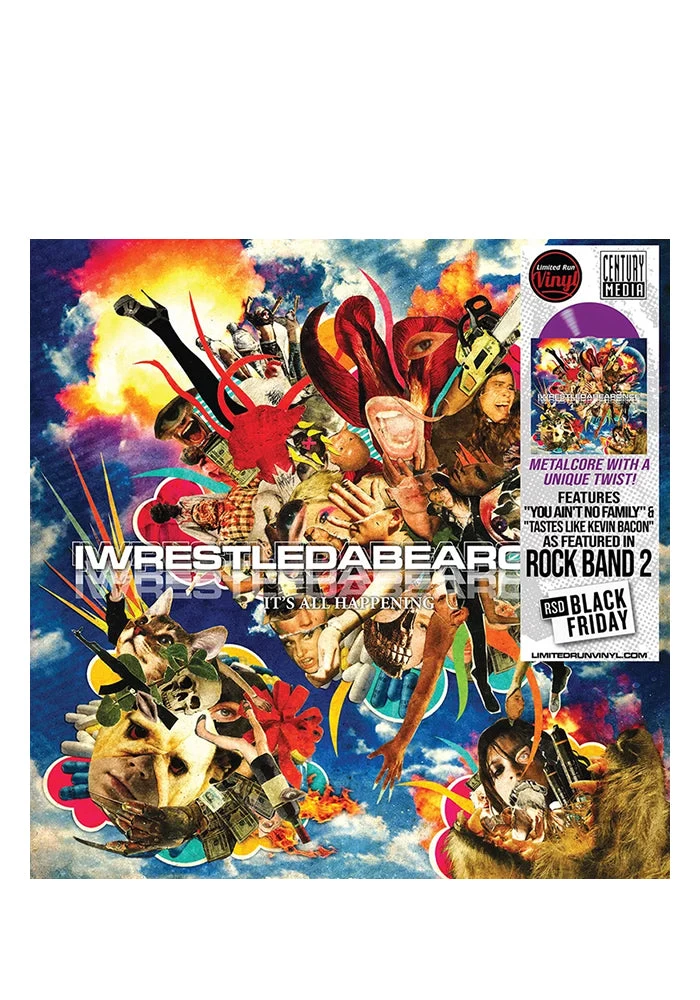 2009 debut album on Century Media Records from the electro-metal-trip-hop-dance-jazz pioneers from Shreveport, LA, IWRESTLEDABEARONCE, produced by Ryan Boesch (Norma Jean). Get your booties on because metal just got way more interesting. Iwrestledabearonce combines elements of brutal metal, hardcore and mathcore with some ambient music and electro beats and a good dose of humor. This means spastic, hectic music with a lot of unexpected twists and turns. The record is loaded with cool beats and samples, adding to the mayhem even more. Topping off all this noise are female vocals that range from grunts to screams, but also clean sung passages which makes the whole of the band a bit poppy, be it that there are some heavy as &%#@ breakdowns and bashing metal parts. It looks like there is fun for everyone on Itโs All Happening! The album segues from guitarists Steven Bradley and John Ganey’s syncopated spastic riffs to dance-floor-ready rhythms and beats courtesy of bassist Mike “Rickshaw” Martin and drummer Mikey Montgomery. Above this explosion of styles, vocalist Krysta Cameron screams with precise brutality, before crooning out hauntingly ethereal passages. On cuts like “Danger in the Manger” and “You Ain’t No Family,” her voice swings like a sledgehammer from bludgeoning to beautiful. The band’s charm lies in their sonic sense of ADD โ catapulting “The Cat’s Pajamas” and “Pazuzu For The Win” from battle-ready math metal to danceable hip-hop doused in jazz for good measure.